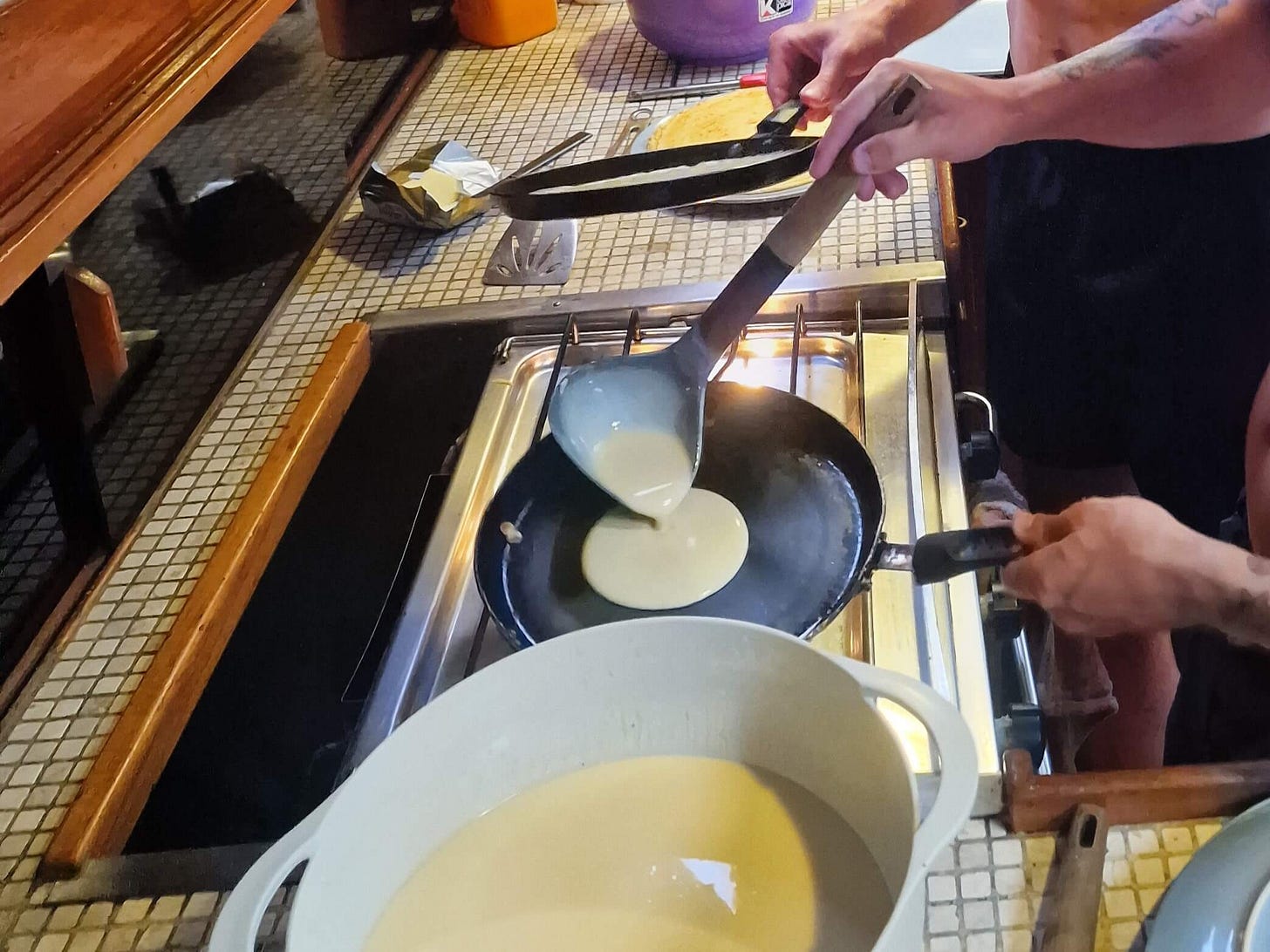 What I realize more each day here is how profoundly grounding it is to immerse oneself in the raw simplicity of nature. Toau, with its gentle rhythm and untamed beauty, invites you to reflect on what truly matters—what makes you feel connected, both to the world around you and to yourself. And while the fish may continue to evade us, and our pancakes may remain comically oversized, I can’t help but feel a deep sense of gratitude for these quiet moments. For the wasp who showed up uninvited and the squall that reminded us to laugh, for the pancakes and the jungle runs, and for the palm trees that seem to stand still while the world spins. It’s in these moments, in these quiet reflections, that the essence of travel and of life itself seems to unfold.